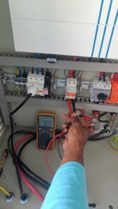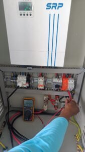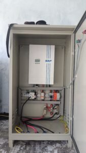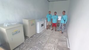 Pak Tio segera melakukan pemeriksaan menyeluruh pada seluruh komponen sistem. Hasilnya melegakan: sistem 3 kWp tersebut dipastikan telah berfungsi dengan baik dan berjalan optimal. Sementara itu, Pak Abil menyiapkan peralatan untuk mengaktifkan sistem monitoring (pemantauan) jarak jauh.