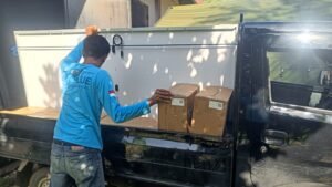 Team memulai loading barang pada pukul 8:30 WIT. Sebelumya tim sudah mengirimkan box battery 5 kWp dan juga 5 Freezer sekaligus komponen aksesris kebutuhan pemasangan di desa Tiley pada kemarin tanggal 26 November 2025.
