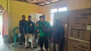 Pengiriman barang ke desa Gorua Utara, Morotai Utara yang terdiri dari 5 box Freezer, box panel, box battere, dan b0x asesories sekaligus memantau persiapan shelter.