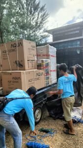 Pengiriman barang ke desa Gorua Utara, Morotai Utara yang terdiri dari 5 box Freezer, box panel, box battere, dan b0x asesories sekaligus memantau persiapan shelter.