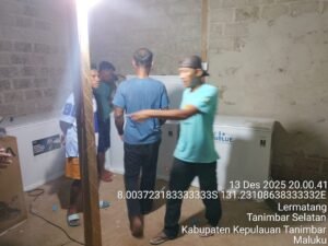 13 November 2025 – Pada kegiatan hari ini, tim memasang dua unit sistem dengan kapasitas berbeda, yaitu 3 kWp dan 5 kWp,yang digabungkan dalam satu shelter 8 kWp dan akan disesuaikan dengan kebutuhan operasional setempat.