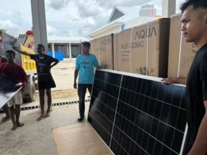 Sore hari, tepat pukul 16.00 WIT, tim melanjutkan koordinasi dengan Bapak Jovren dan Wakil Bapak Franky terkait penempatan dan pengelolaan barang di PPI Ukurlaran. Tak berselang lama, pukul 16.30 WIT dilakukan koordinasi lanjutan dengan Bapak Felix dan Bapak Amus untuk pengaturan distribusi barang ke wilayah Sifnana dan sekitarnya. Pada kesempatan yang sama, tim juga menerima laporan perkembangan pembangunan shelter di Ridol Tanut yang saat ini menunjukkan progres positif. Dari hasil koordinasi, disepakati rencana distribusi untuk empat titik di Sifnana yang akan mengambil barang pada hari Sabtu. Selain itu, tim juga menjadwalkan pemasangan sistem 1 kWp pada kapal nelayan setempat pada hari Minggu sebagai bagian dari dukungan energi terbarukan untuk sektor perikanan.