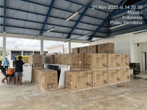 Tanimbar 21 November 2025 – Mulai pukul 09.00 hingga 15.00 WIT, supervisor melakukan pemantauan langsung terhadap proses bongkar muat kontainer ke truk di pelabuhan, memastikan setiap unit material dipindahkan dengan aman. Pada saat yang sama, chief engineer bersama tim melakukan pembongkaran barang dari truk ke gudang penyimpanan sementara di PPI Ukurlaran, sekaligus melakukan penataan awal logistik.